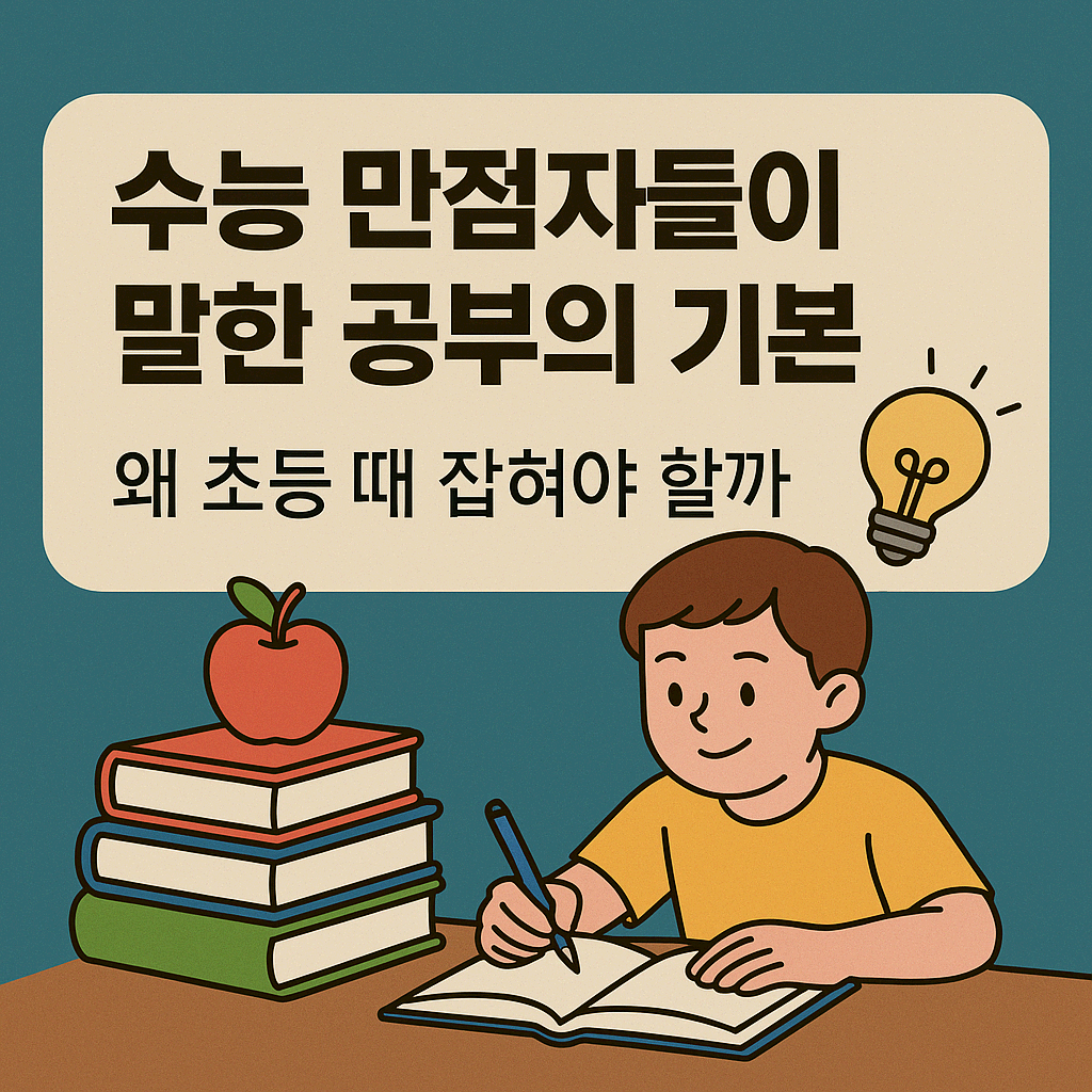 이 글은 “만점자처럼 만드는 방법”이 아니라, 기사에서 반복되는 공통 요소를 통해 초등 시기에 잡힌 기본기가 장기전을 버티게 한다는 점을 정리한 글입니다.