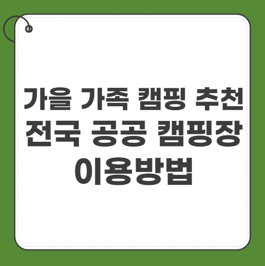 가을은 선선한 날씨와 아름다운 단풍 덕분에 가족 캠핑을 떠나기 좋은 계절입니다. 이번 글에서는 전국 인기 캠핑장 추천, 공공 캠핑장 예약 방법, 준비물 체크리스트까지 모두 정리했습니다.